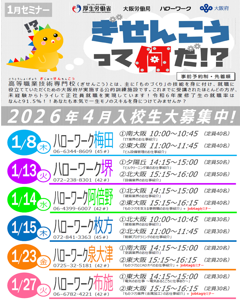 ぎせんこうを知っていただくため、業界の仕事紹介セミナーをハローワークで開催します!セミナーで講師を務めさせていただくのは、ぎせんこう4校(東大阪校・南大阪校・北大阪校・夕陽丘校)で職業訓練を教えている職員(職業訓練指導員)です。