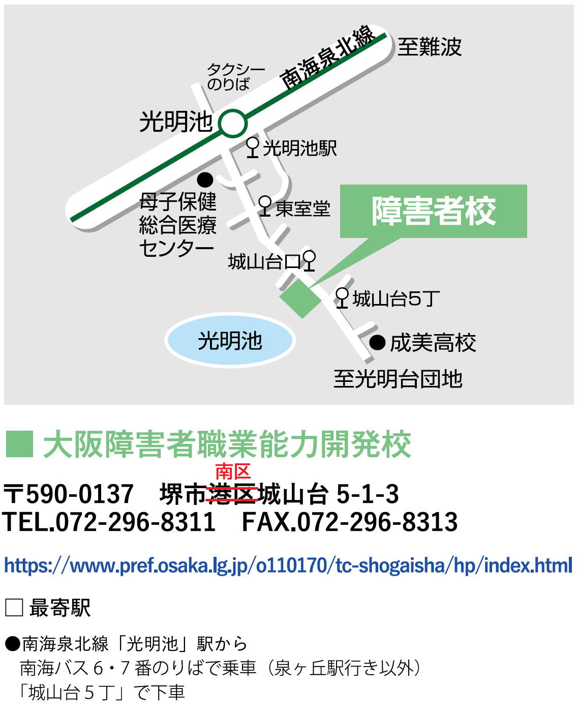 に記載している大阪障害者職業能力開発校の住所に誤りがございました。